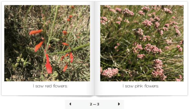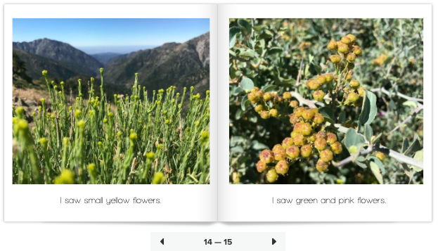 My toddler and I hiked a portion of the Pacific Crest Trail near Wrightwood, California and along the way we saw a lot of colors. We kept pointing and naming the new colors that we saw on the trail. My daughter is still learning her colors so I thought this would be a great opportunity to make a book for her. I took pictures of each new flower, plant, or other living or nonliving thing with new and interesting combinations of colors. Where are the colorful places in your child’s world that you have experienced together?